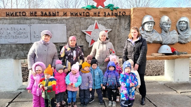 17.03.25 дети группы общеразвивающей направленности от 1.5 до 3 лет, группы общеразвивающей направленности от 3 до 4 лет вместе с воспитателями Воробьевой Л. А. и Исаевой С. В. возложили цветы к памятнику погибшим солдатам, героям-землякам Великой Отечественной войны. Значение патриотического воспитания дошкольников заключается в том, что именно в этом возрасте закладываются чувство любви к Родине, система ценностей и жизненные ориентиры.